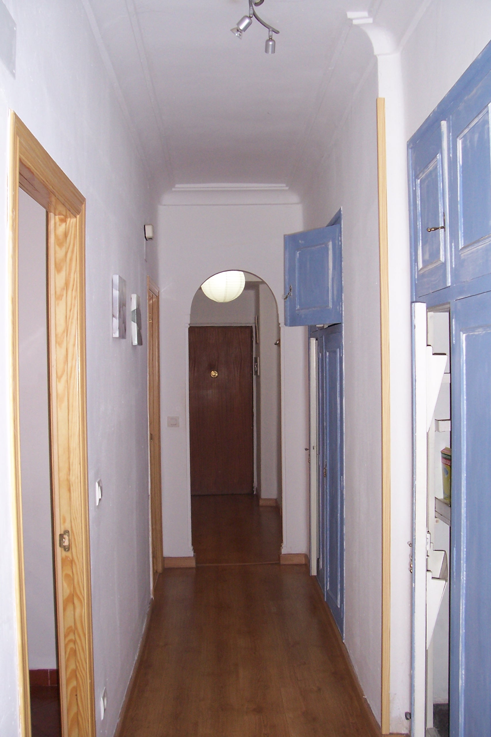 Paredes lisas blancas; alicatados y suelos de tarima.